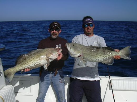 Sorry for not keeping you guy's up to date on Offshore Hustler fishing report we have been out grouper diggen for the last few month's.This years winter has been very nice to us as fare as the weather and fishing goes.Grouper seem to be in closer on hard bottom. Live bait seem to be around the beaches just 2 or 3 mile offshore big threadfins, tomtats and pinefish.Stop and get some you will be glad you did..Always start off with dead sardens and then switch over to live bait to pull the big dad's out.Give your spot a little time and the should start showing up. Visit ower photo gallary to see what's on the menu...