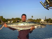 Well guys dust off the down riggers and start twisting wire becasue the Kings are here.Most off the good size bait have been offshore on hard bottom and also around the cargo ships. Here is a picture of a 41.2 oz King Mac that was caught 24 miles from john's Pass with a charter on a SKA Tournament weekend. Spanish mackeral are all over the beach almost any were you can find a bait school.Slow trolling has been working great with live bait or you can us spoons at a faster pase.A 750ss spinning rode with 20lb test will do the job.You can also use a shamono TLD 25 with 20-25 lb test with a light action rod for fun. Till next week Tight lines and scremming drags. Offshore Hustler Charters <><